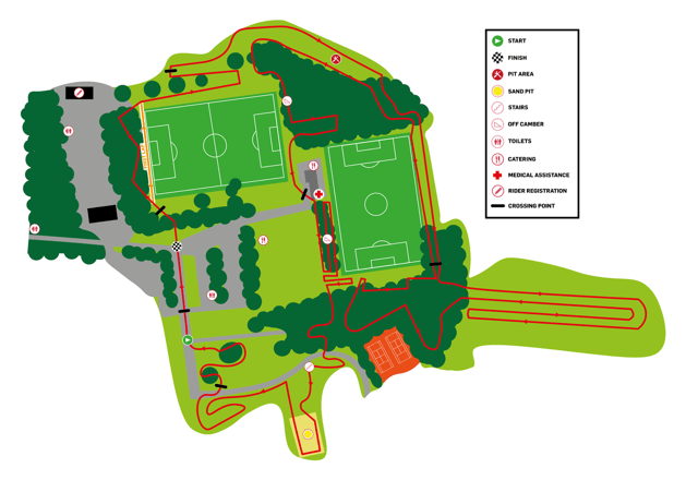 The course has undergone a few changes. Course designer Guido Delnoije has once again created a challenging, technical course. Long straightaways, short steep climbs, off-camber sections, technical passages through the woods, stairs, a sandpit, and the wet zone passage. It all makes an appearance, but some sections are slightly different than in 2024.